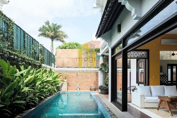 Cho thuê biệt thự phong cách IndochineCho thuê biệt thự phong cách Indochine Diện tích: 350m², nhà 2 tầng, 4 phòng ngủ phòng ngủ cho khách garage oto Sân vườn nằm sân thượng Hồ bơi đất tạo gian thư giãn tư