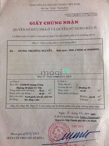 🏡 BÁN NHÀ QUANG TRUNG, PHƯỜNG 10 ❤️DT: 6 x 12m, sổ CN 62🏡 BÁN NHÀ QUANG TRUNG, PHƯỜNG 10 ❤️DT: 6 x 12m, sổ CN 622m ⏩Hiện trạng 4 phòng trọ củ Tiện khách xây ⏩Hẻm ba gác, sạch sẻ, thoáng mát, an ninh, yên tĩnh,
