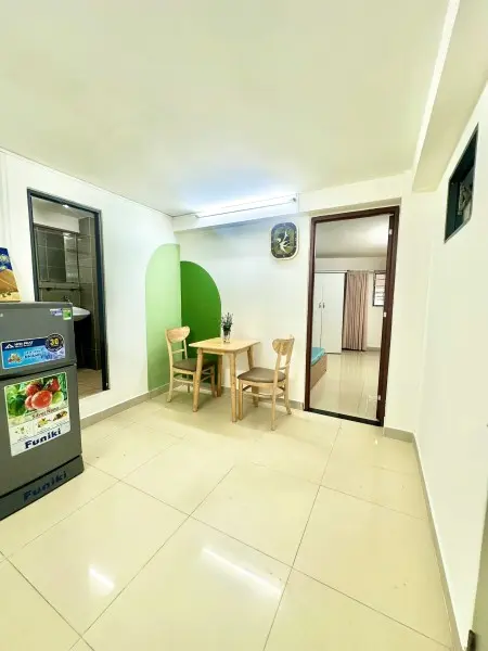 Thông tin mô tả CĂN HỘ STUDIO FULL NỘI THẤT – QUẬN 10 224/20 Lý Thường Kiệt, P Thông tin mô tả CĂN HỘ STUDIO FULL NỘI THẤT – QUẬN 10 224/20 Lý Thường Kiệt, P14, Q10 (đối diện SVĐ Phú Thọ, đường 3/2) Diện tích 40m², thiết kế 1 phòng ngủ + 1 phòng khách rộng, WC lớn Nội thất 100%: giường nệm, tủ áo, bàn làm việc/ăn Máy lạnh tiết kiệm điện, tủ lạnh 2 cửa Máy giặt miễn phí, tiện sinh hoạt Khu bếp riêng: tủ bếp, bồn rửa, kệ chén WC lavabo, gương, nước nóng lạnh NLMT Cửa vân tay, camera, giấc tự do Khu dân cư văn minh, CV Lê Thị Riêng, BV & ĐH lớn Giá thuê: 6