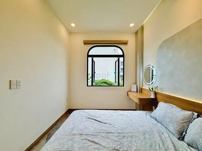 Bán nhà hẻm 3m sát hẻm xe hơi thông đường Quang Trung, PBán nhà hẻm 3m sát hẻm xe hơi thông đường Quang Trung, P10, QGò Vấp + Diện tích: 4,5 x 7 nở hậu 5,5m (Sổ hồng hoàn công hỗ trợ vay ngân) + Kết cấu: Nhà 1 1 lầu, thiết kế hiện đại, sang trọng, giếng trời thông thoáng, 2 phòng ngủ, 2 nhà vệ sinh, phòng bếp, phòng khách, khu giặt phơi, khu đẹp, nhà đẹp lung linh full nội thất cao cấp sách valy vô + Siêu vị trí: Ngay ngã 5 chuồng chó, Vincom, sát Bình Thạnh, Phú Nhuận, sân bay, căn khu vực + Giá: 4