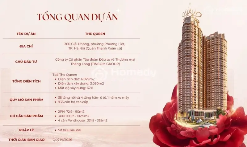Trực tiếp phân phối quỹ căn 2PN 3PN độc quyền chủ đầu tư dự án The Queen 360 Giải Phóng, hướng Đông Nam mát mẻ, diện tích lớn * Giá 89 tr/m² Trực tiếp phân phối quỹ căn 2PN 3PN độc quyền chủ đầu tư dự án The Queen 360 Giải Phóng, hướng Đông Nam mát mẻ, diện tích lớn * Giá 89 tr/m²