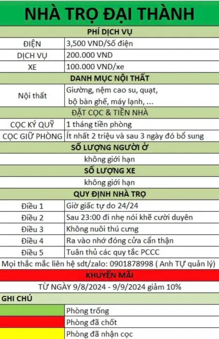Thông tin mô tả Chính Chủ Cho Thuê: - Phòng trọ/ ký túc xá (4 người/ phòng) - Phòng học biệt, camera 24/7, miễn phí xe Thông tin mô tả Chính Chủ Cho Thuê: - Phòng trọ/ ký túc xá (4 người/ phòng) - Phòng học biệt, camera 24/7, miễn phí xe